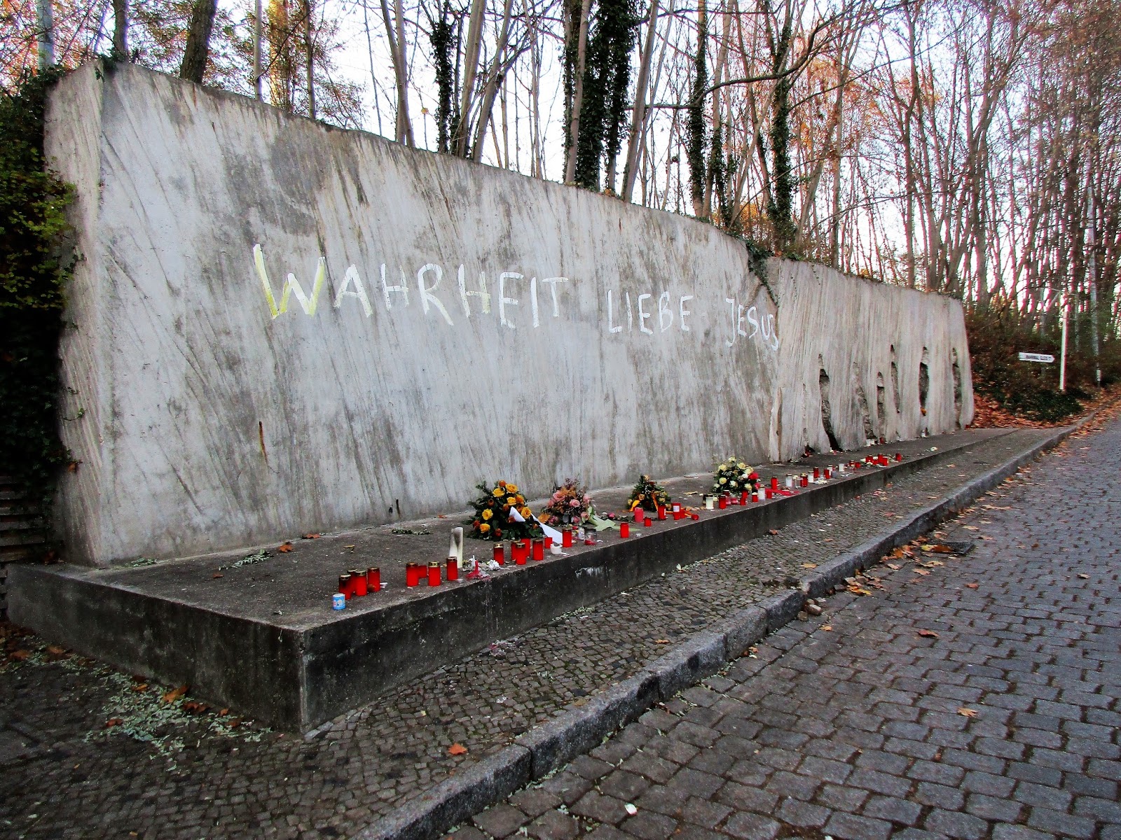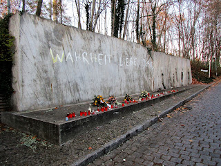 Esta manhã o Fox fugiu para o memorial Gleis 17. Fui atrás dele, e encontrei um senhor a tirar fotografias. Falei-lhe da