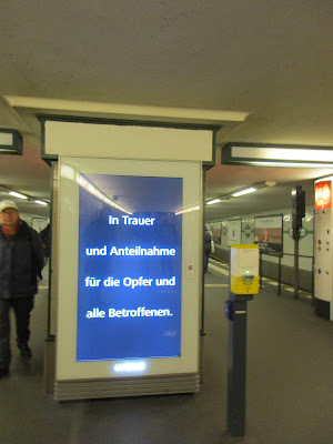 Os meios de comunicação social falam de uma população berlinense que não se deixa impressionar. "Máxima imperturbabilidade" é um título do Spiegel. Sinto que é um pouco diferente: as pessoas estão mais próximas, mais atentas umas às outras, mais pacientes. Notei ao atravessar a cidade de carro (não havia as típicas buzinadelas "sai da frente!"), e também no metro. É certo que quase todos estavam como habitualmente entregues aos seus sms, jogos de telemóvel, jornais ou livros, mas quando entrou um grupo de músicos pedintes com a artilharia toda (gravação, trompete e melódica) e se puseram a interpretar "Hit the road, Jack" muito alto e muito mal, eu fiz uma careta bem-humorada e todas as pessoas à minha volta se começaram a rir. Geralmente consigo a cumplicidade de uma - ou duas, no máximo.