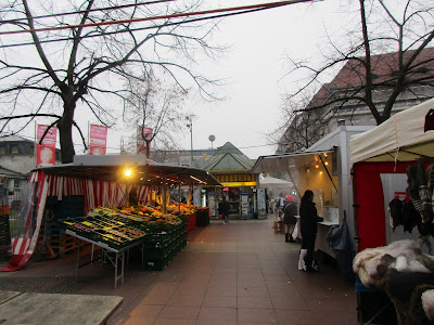 O mercado de rua na Wittenbergplatz estava aberto. Parei na barraquinha