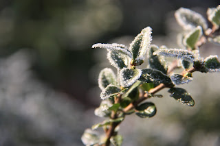 Cedo falei. Esta manhã, a janela da cozinha estava coberta de gelo: