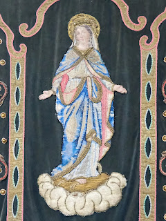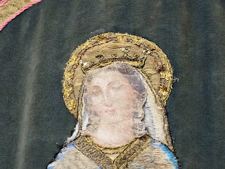 Um dos estandartes da procissão "Troménie" (e eu a perguntar-me como é que levam estas preciosidades para dar uma voltinha de 12 quilómetros ao vento e à chuva da Bretanha):