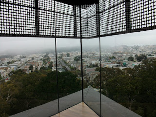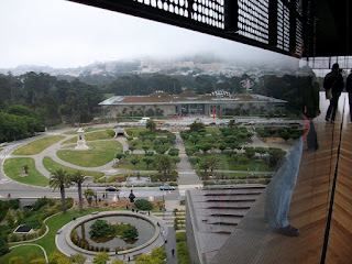 O novo museu de Young é fascinante. Construído em 2004 para substituir o edifício anterior, que foi muito abalado pelo terramoto de Loma Prieta, é uma bela surpresa no meio do Golden Gate Park. Enquanto passeava pelo parque e pelo telhado da Academy of Sciences, mesmo em frente, não conseguia deixar de admirar os perfis diversos da torre em rotação sobre si própria, o ritmo das perfurações na fachada, ou o processo de mudança das cores no cobre - que confunde cada vez melhor o edifício com o seu parque.