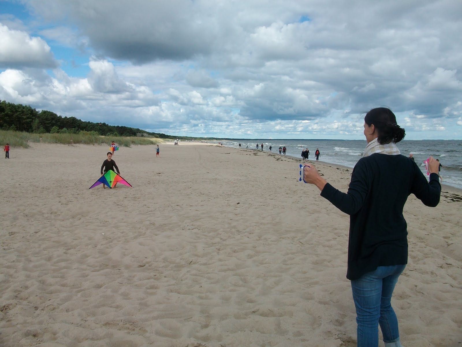 Na praia ficou uma mulher a observar os intrépidos nadadores. Parecia um poema épico. Mas depois começaram a juntar-se nuvens de chuva, e resolvemos dar meia volta para chegar ao albergue a horas do almoço.