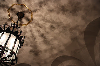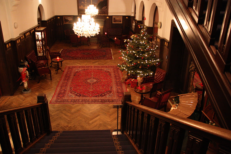 O nosso hotel era um palacete "renascentista" de fins do século XIX, com decoração interior feita por Henry van de Velde. Durante o período comunista, o palacete - tal como muitos do seu género - foi usado como lar de terceira idade, depois como hospital. Todo o seu recheio foi levado, sabe-se lá por quem. Após a queda do muro foi vendido, e - tal como muitos do seu género - transformado em hotel paradisíaco, entre um lago e um parque. Os seus novos donos tentaram recuperar o mais possível dos adornos originais, e deram-lhe mais de quatrocentos quadros com motivos da ilha.