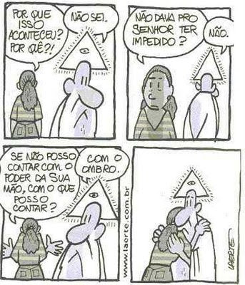 Por falta de tempo para mais, copio para aqui um cartoon que encontrei no facebook graças a um amigo. Além de ser um desenho genial (ai, Quino!), não nos livramos tão facilmente desta ideia incómoda de haver por aí algo diabólico que nos ovelhiza a vida.