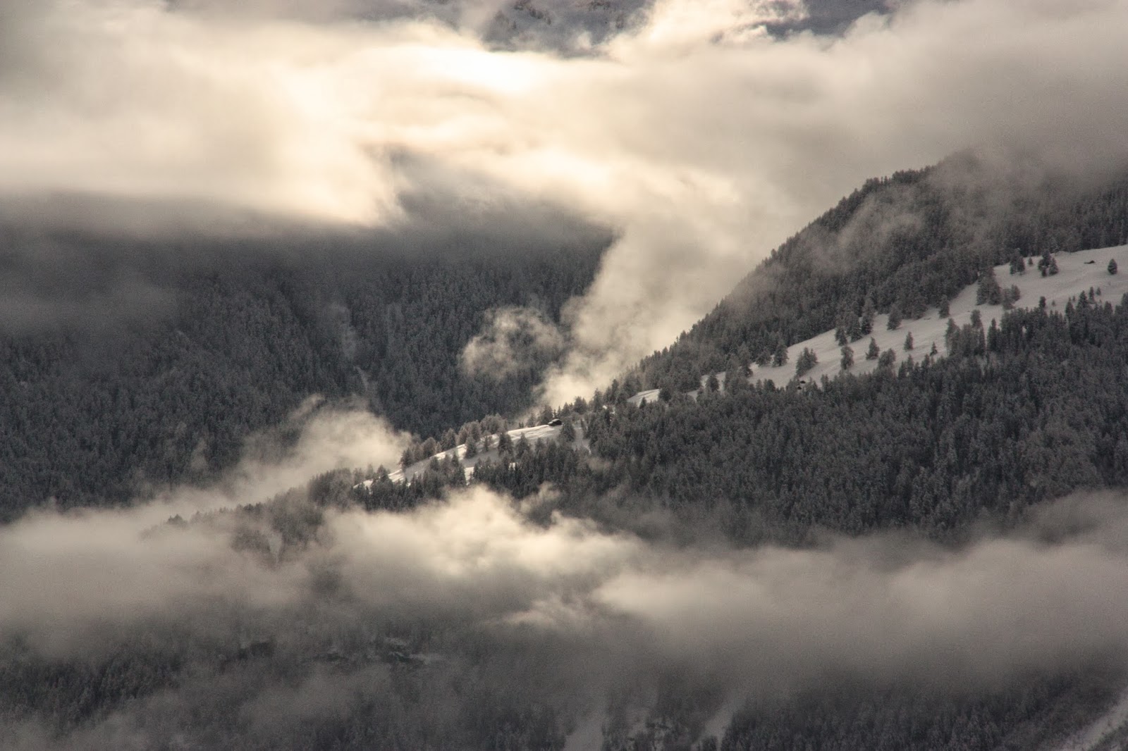 O guia que nos levou a explorar as encostas de neve funda em raquetes de neve levou chá de sabugueiro e um vinho doce da região, feito com uvas vindimadas no princípio do Inverno, e fartou-se de contar histórias engraçadas sobre raposas bêbedas a gemer pelo meio das vinhas, confusões de nomes que acontecem aos funcionários estatais que não falam bem a língua do cantão, e outras trapalhadas do género. Apontou para uma carecada no monte e disse que foi um pirómano da aldeia que incendiou a floresta, e que foi preciso gastar muitos milhões para fazer artificialmente o que a floresta faz com tanta naturalidade: evitar as avalanches, reter a água, evitar a erosão. Também nos mostrou barragens que as aldeias souberam usar para enriquecer, e falou sobre a empresa Ricola que compra toda a produção de ervas aromáticas biológicas daquela região para fazer os seus rebuçados. Pelas entrelinhas do que dizia passava-me a ideia de uma economia feita de pequenas coisas sólidas, e de autarquias e populações que sabem lutar para melhorar a sua qualidade de vida.